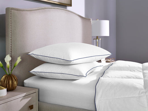 The 8-pack of Down Alternative Pillows with White Sateen Cover with luxurious satin piping. Fluffy with medium firmness. Down alternative performan...